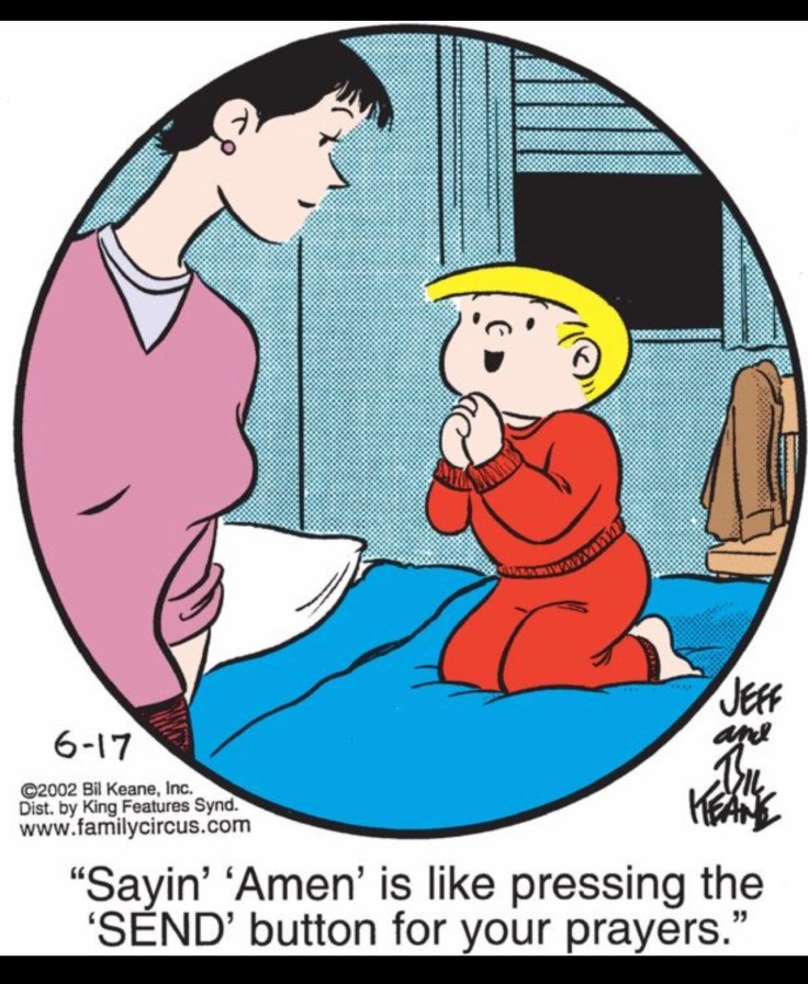 - Grace ends with the entire family saying,”Bless us, O Lord, and these Thy gifts, which we are about to receive from Thy bounty, from Christ our Lord, Amen.”