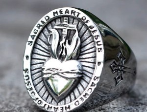 I have a consistent devotion to the Sacred Heart, not just in June but all year long. I even wear a ring that depicts the Sacred Heart. (You can see a picture of my ring below.) The ironic thing about my devotion is that, when I was a kid, I attended Sacred Heart School and yet, I never recall anyway teaching me back then what Sacred Heart meant. I never had a teacher or the pastor explain how the school and parish was named in honor of Jesus’s loving heart. It was just a name of a building/school to me that I somewhat resented because when our school’s team played CYO (Catholic Youth Organization) basketball and baseball games against other schools, the opposing players would always taunt us with jeers of “You play for Sacred Fart!”