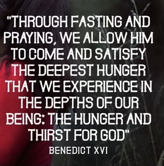 Another piece of advice to help you remain faithful to fasting is to set your smart phone reminder-app to pop up reminders throughout your fasting day(s) to remind you about why you are doing this and to motivate you to keep suffering through the hunger pains. Some of the reminders I use to help me include the quotes above from St. Francis de Sales and Pope Benedict, along with these: