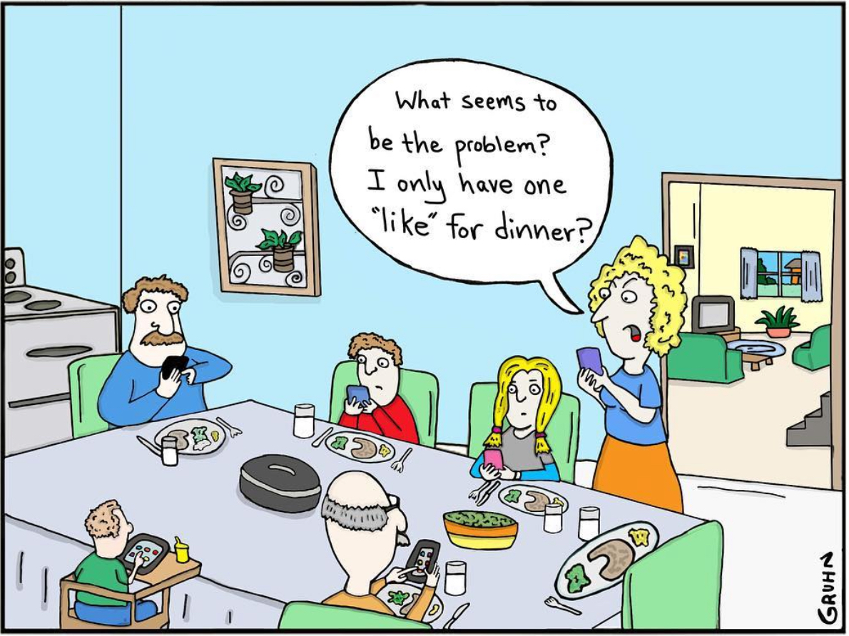 Because more families than in any other time of history are either run by a single parent or by two parents who both work outside the home, it is more convenient nowadays for family members to eat fast food on the run or microwave unhealthy meals. Similarly, because more children than ever before are either over-scheduled with sports practices and the like or are over-exposed to screen time and can’t pull their faces away from screens, it is easier for family members to eat dinner separately based on their unique calendars.