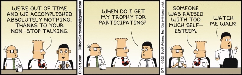 If we desire that our kids work hard as well as see the redemptive value of suffering, we cannot hand them a reward for simply showing up nor throw them a lifesaver at the first sign of distress. This artificial inflation of self-esteem will eventually end up hurting our children as they grow up and join the real world. We do not want them to enter the work force and assume if they simply show up at their job they will get ahead with bonuses and promotions. We do not want them, when their boss reprimands them for a poor job performance, to go into a deep depression due to everything in life up to this point having been handed to them and thus they had never experienced a smaller version of this type of disappointment.