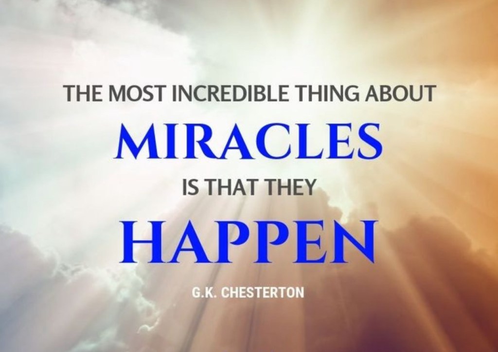 Miracles are supernatural signs brought about by God that indicate His glory. We associate miracles with long ago accounts we read about in Scripture, such as the Incarnation and the Resurrection. However, God works miracles today.
