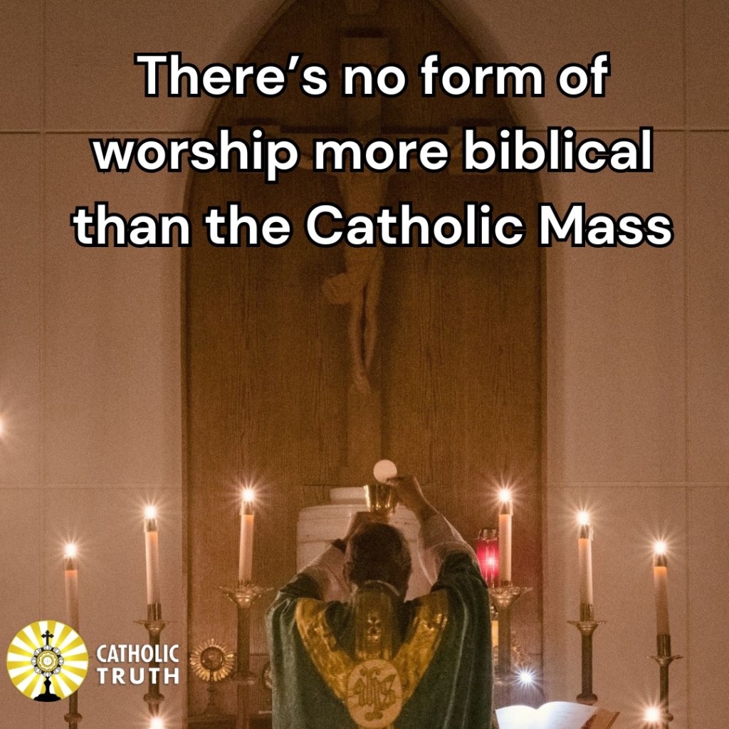 Therefore, Catholics are certainly Bible Christians. Our Faith exhibits our profound connection with Scripture at every Mass. Possibly the best proof of Catholicism’s deep love and highest regard for the Bible is how the Mass’s words and gestures are incorporated with the pages of Sacred Scripture. Catholic worship via the Mass is indeed a biblical style of worship.